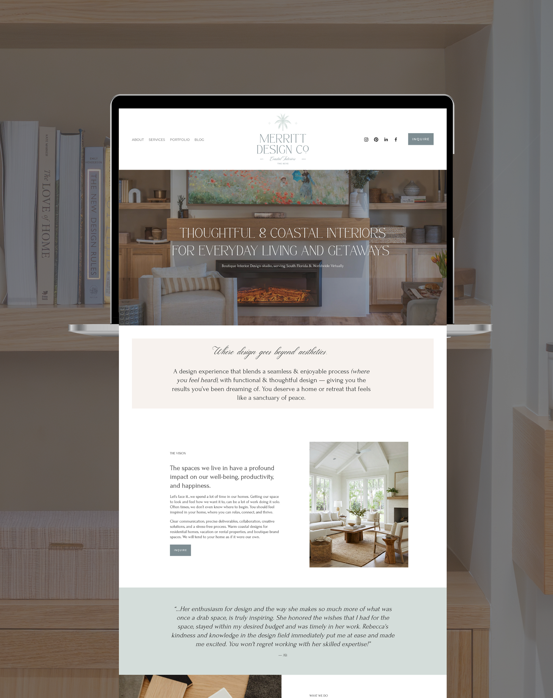 Rebecca Merritt is an Interior Designer in South Florida, offering a high-end turnkey experience for residential homes or vacation homes, getaway rentals, and boutique brand spaces. She specializes in creating thoughtful spaces that combine functionality and relaxed elegance so that every space feels like a breathe of fresh air. Hey Dani Creative designed her entire brand, custom website with basic SEO built-in.